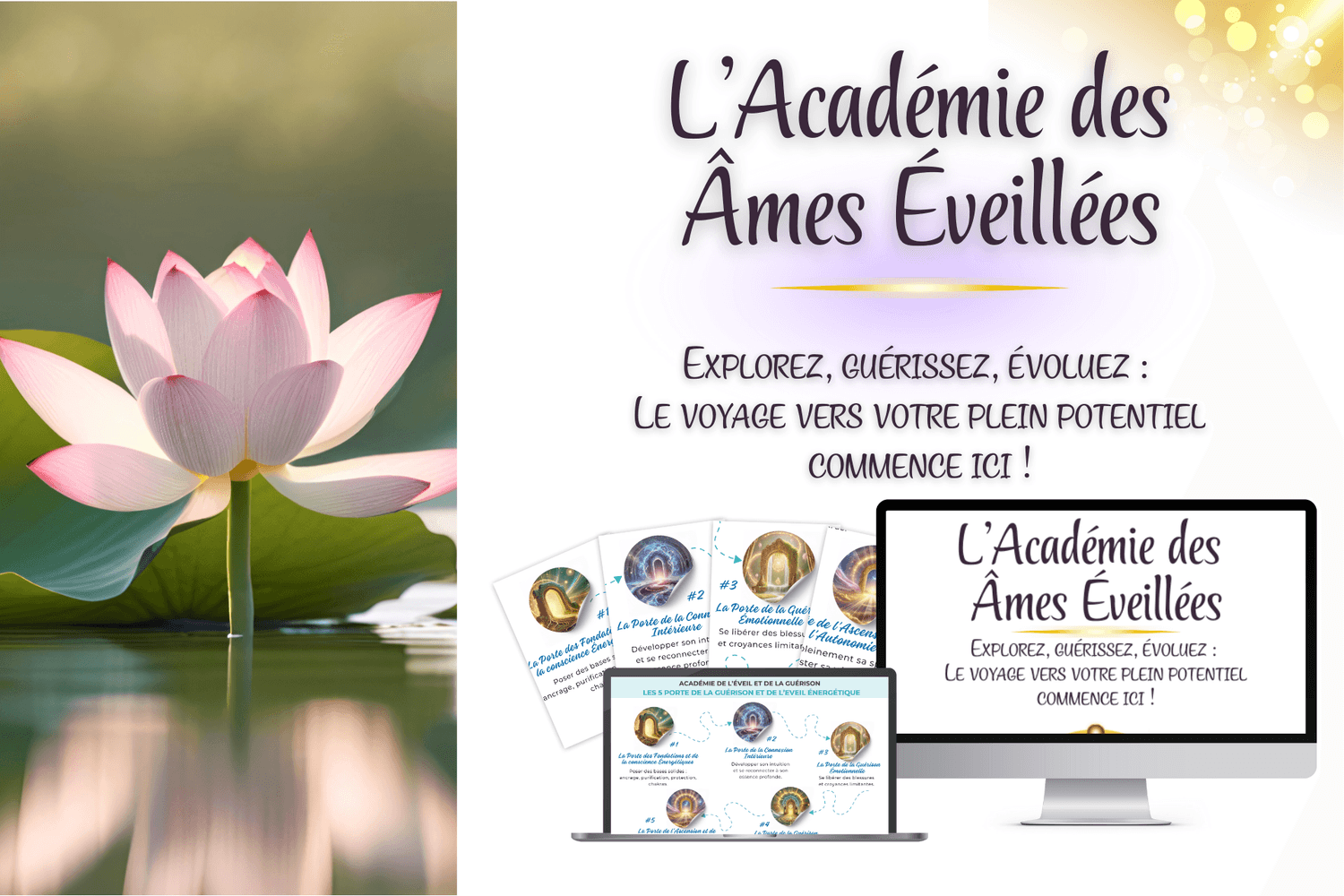 Votre transformation commence ici. À travers un parcours structuré en 5 étapes, vous allez poser des bases solides, éveiller votre intuition, guérir vos blessures, harmoniser votre énergie et incarner pleinement votre essence.